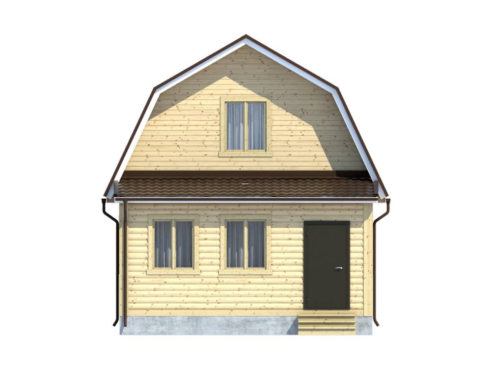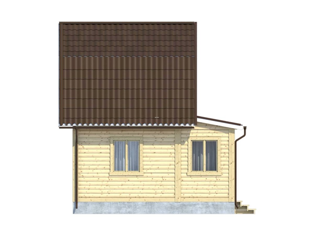 Дом из профилированного бруса с , выполненный по проекту 8, превосходно вписывается в загородный дачный участок, независимо от особенностей ландшафта и разновидности окружающей растительности.
