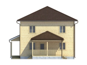 Дом из профилированного бруса с , выполненный по проекту 58, превосходно вписывается в загородный дачный участок, независимо от особенностей ландшафта и разновидности окружающей растительности.