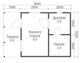 Баня одноэтажная: 2,5 м.