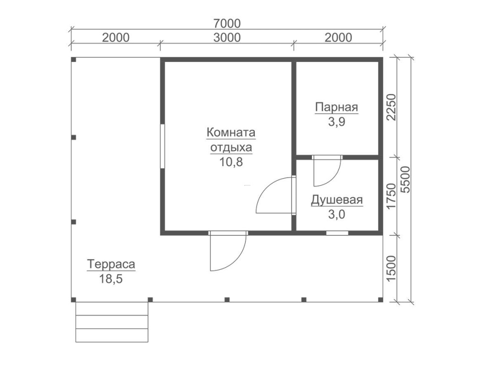 | Двери | Входная- металлическая, утеплённая (Россия). Межкомнатные- филёнчатые. В душевую/парную- клиновые (банные). | |