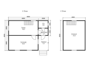 полутораэтажный каркасное здание общей площадью 64.3 кв.м. имеет тщательно продуманную планировку и удобное расположение помещений, гарантирующих комфортное размещение небольшой семьи для приятного отдыха на природе.