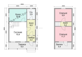 Проект 118 дома с балконом и маленькой террасой (6х9 м.) имеет несколько несомненных преимуществ, обеспечивающих растущую популярность среди владельцев дачных участков.