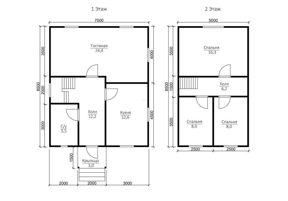 Популярные размеры домов и коттеджей сегодня: мини - до 50 м2 (как правило, 1 этажные дома); компактные - от 70 квадратных метров до 100 квадратов (обычно 2х этажные); большие - начиная от 150 м2 и больше.